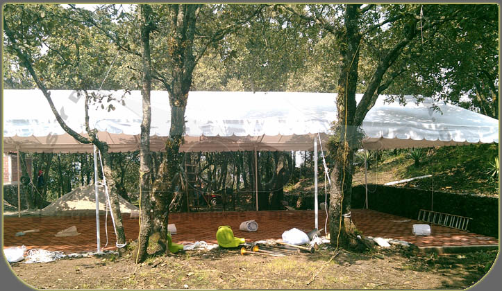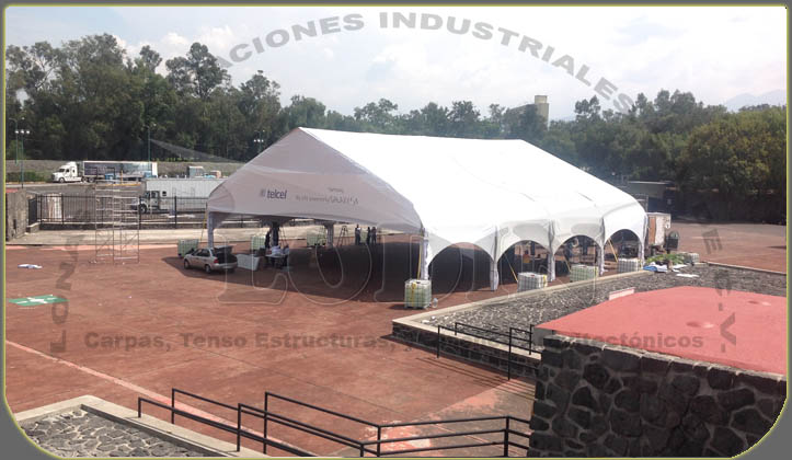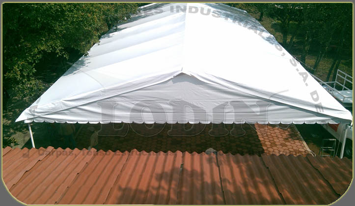 Incluye: estructura a dos aguas fabricada en acero, cubierta de lona, tapas frontales y traseras, cortinas laterales con ventanas de hule cristal o lisas, plafón en tela, cubre postes, luz . Anchos que manejamos: Carpa 5m., Carpa 10m., Carpa 15m., Carpa 20m., Carpa 25m.,Carpa 30m., Carpa 40m.,Carpa 50m.Cubrimos cualquier superficie.